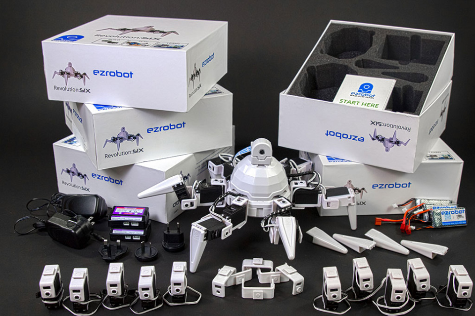 Containing 5 Hexapod robots and other assorted parts, this is the perfect set for a classroom looking to expand its EZ-Robot collection.